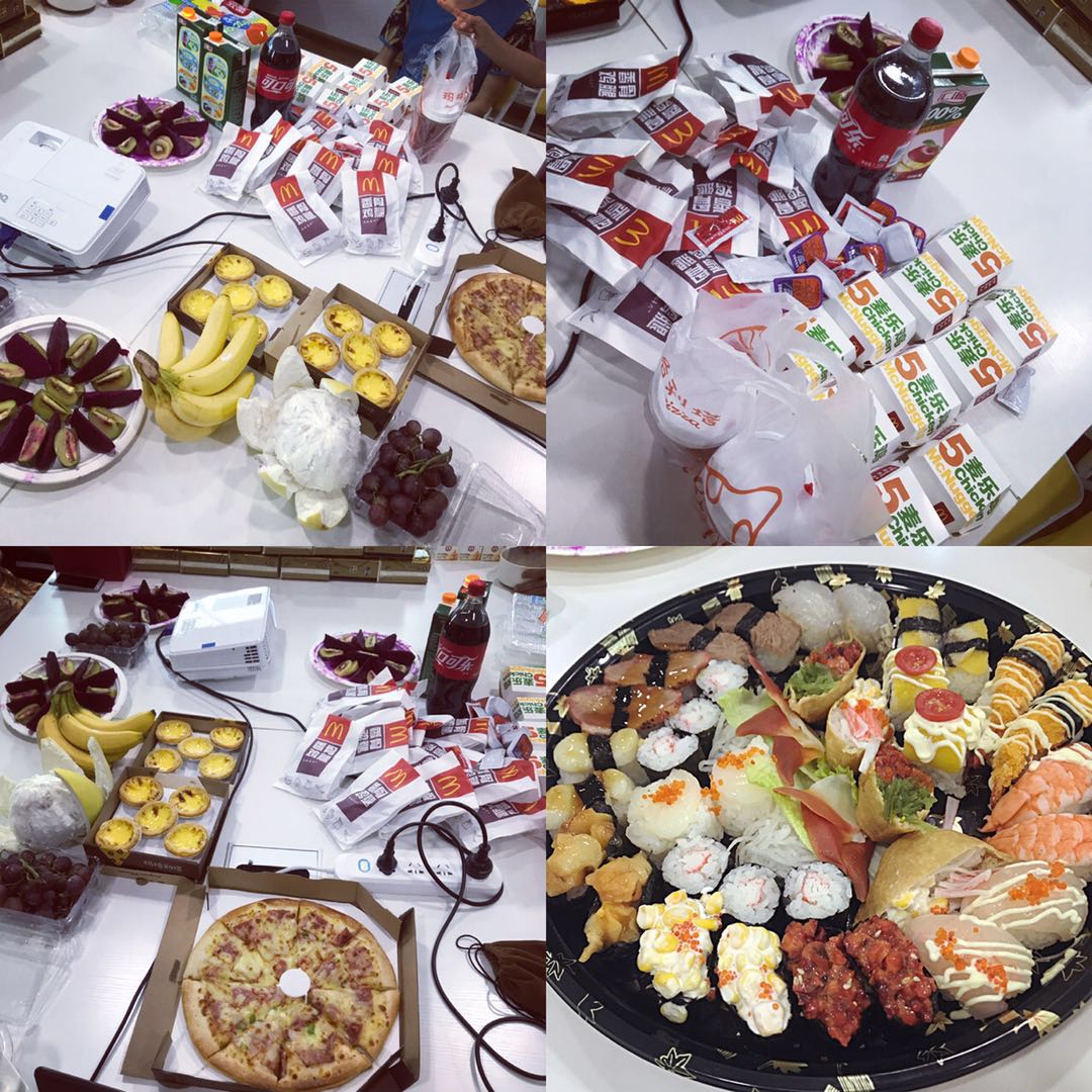 各式各樣的的獎品滿滿當(dāng)當(dāng)?shù)臄[了一桌,是不是很誘人呢,最后大獎落入了誰的手里呢?等等,在這種時候少不了吃的呀~