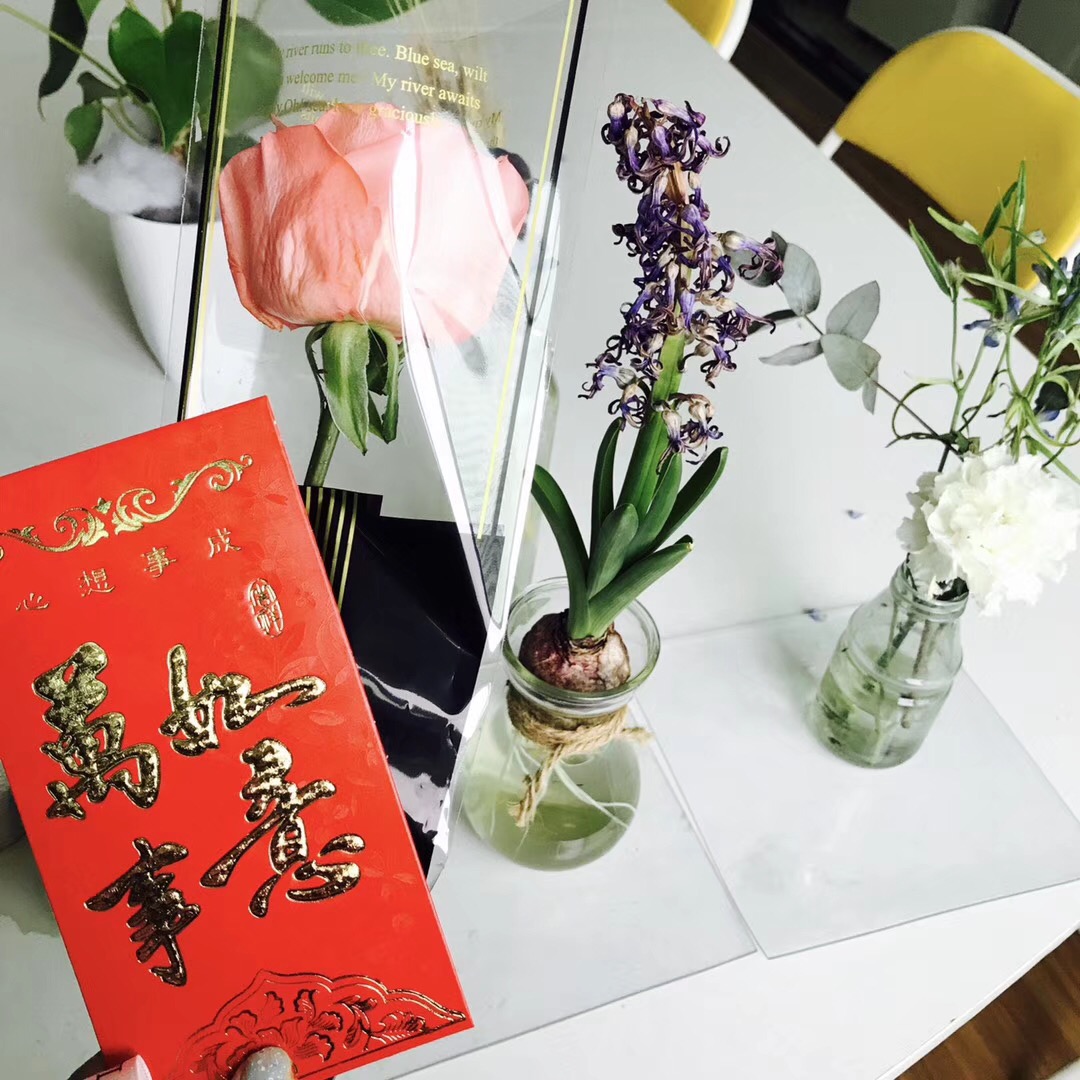 一大早細心的老黃還給女神們準備了粉玫瑰![]()